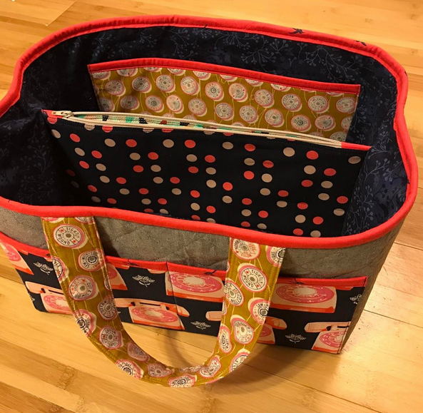 The Q2 Winner of your choice of 3 individual patterns from Happy Quilting goes to Katy (@pudgypenguincrafts) who made this fantastic sewing date traveler bag: