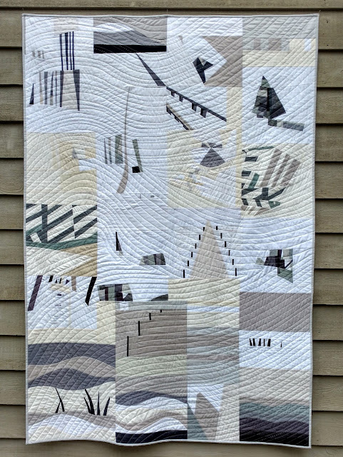 Winter is my first quilt finished with Bee Sewcial blocks. The prompt was "abstract minimalist winter landscapes in shades of grey." Did my bee mates deliver or what? I love this quilt, and I will be submitting it to QuiltCon 2018 show.