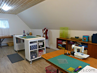 I'm extremely fortunate to be able to have a completely separate studio to work in - we finished the 450 square foot space over our detached 2-car garage just for my quilting. (Truth be told that space was what sold us on this house. Good thing we like the rest of it!)